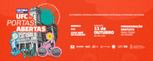 O UFC de Portas Abertas é uma celebração da universidade e um convite para que a sociedade vivencie o conhecimento, a arte e a cultura produzidos pela comunidade acadêmica. A ação é realizada pela Procult em parceria com a Pró-Reitoria de Extensão (PREX), integrando equipamentos culturais e projetos de extensão da UFC em uma grande jornada de partilha e encontro.